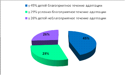 года показал следующее: благоприятное течение адаптации наблюдалась у 45%,