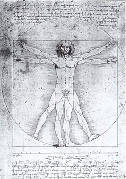 Знаменитый рисунок Леонардо да Винчи, изображает обнаженного мужчину в круге.