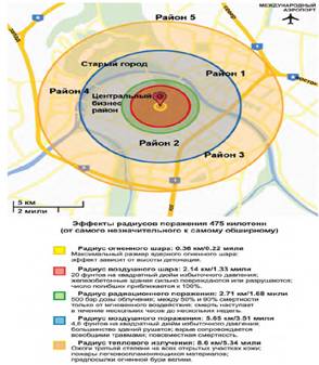 Последствия детонации одного из типичных ядерных боеприпасов, сброшенного на город