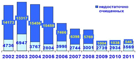 последние 6-7 лет, объем недостаточно очищенных сточных вод сократился более
