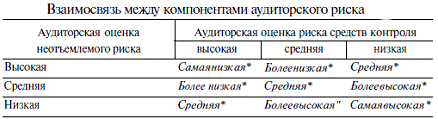 Таблица 1 Взаимосвязь между компонентами аудиторского риска