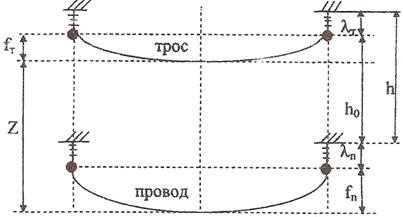 где fn-стрела провеса провода в