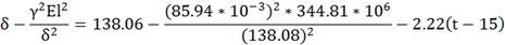 δ-((85.94*10-3)2*1101,4*106/δ2)= 674.6 -2.22*(0-15)