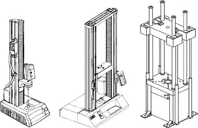 Рис. 2.3. Конструктивное исполнение испытательных машин: одноколонные (а), двухколонные (б) и четырехколонные (в)