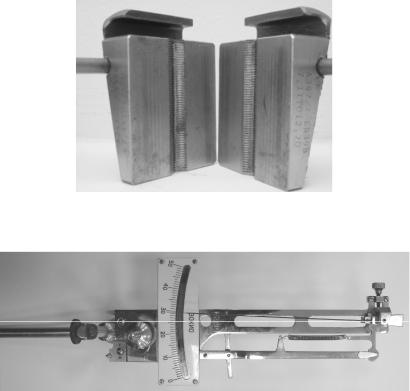 Современные испытательные комплексы включают не только автоматизированную нагружающую систему, но и системы измерения. К ним, прежде всего, относятся датчики измерения деформации – тензодатчики, деформометры, экстензометры. Примером наиболее простого средства измерения деформации может служить механический деформометр Гугенбергера, представленный на рис. 2.7.