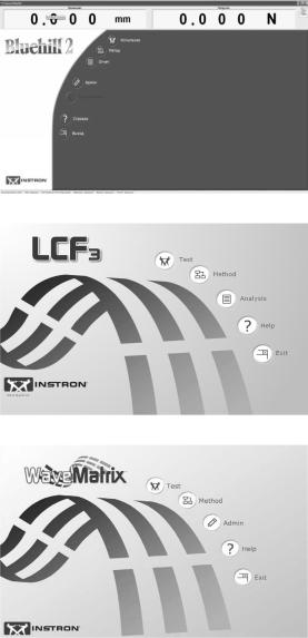 Для проведения различных экспериментов на испытательной системе Instron 8801 используются специализированные программы. Интерфейсы программ Bluehill 2, LCF 3 и WaveMatrix представлены на рис. 2.22.