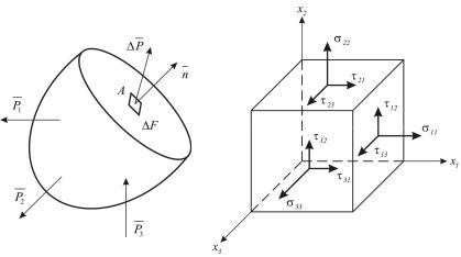 Чтобы полностью определить напряженное состояние в точке тела, достаточно рассмотреть проекции векторов напряжений, действующих на трех взаимно ортогональных площадках. Обозначим оси координат x1 , x2 и x3 , нормальные напряжения символом σ, касательные – τ (допускается также и обозначение σ) с использованием индексов.