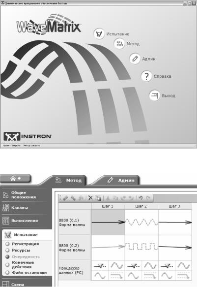 ность настраивать метод испытания, запускать испытания по заданному методу и собирать данные для широкого ряда динамических и квазистатических испытаний материалов.