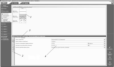 Рис. 5.6. Окно создания очередности шагов испытания: 1 – область схематического представления шагов испытания, 2 – панель выбора формы сигнала, 3 – вкладки настроек параметров сигнала, 4 – строки изменения параметров