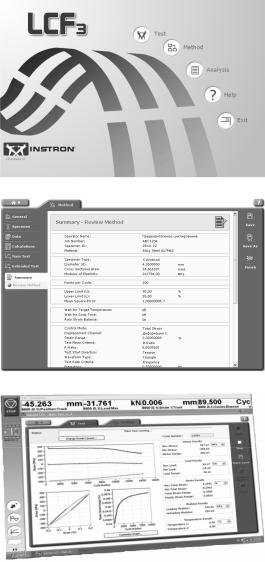 показаны основное меню и экраны настройки метода эксперимента и испытания программы LCF3.