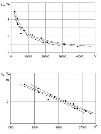 Необходимо провести статистическую обработку полученных экспериментальных данных, по результатам которой следует определить эмпирическую формулу линии регрессии в виде степенной функции N (εa ) = C εαa с определением вели-