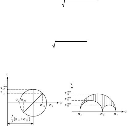 здесь знак «+» соответствует напряжению σ1 , а знак «–» – напряжению σ2 .