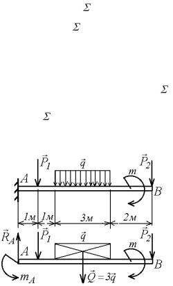 ся к сосредоточенной силе RA и паре сил с искомым моментом m A (см. § 7.3). Так как в горизонтальном направлении ак-