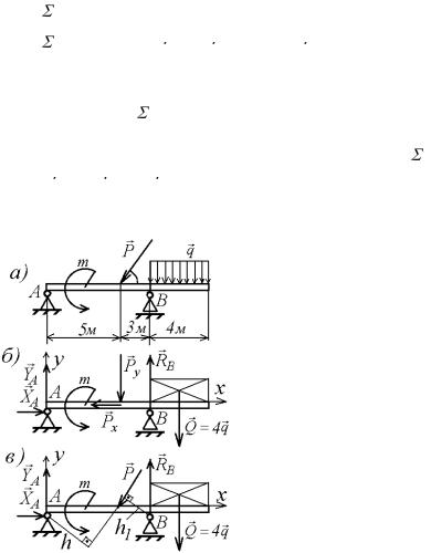 и пары сил с моментом mА (см. § 7.3). Для решения задач можно пользоваться системами уравнений равновесия в одном из видов: (8.8), (8.9) и (8.10). Правильность решения можно проверить, используя какие - либо два вида из указанных систем уравнений.