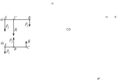 = 0. При одинаковых направлениях сил R= P1+ P2, при противоположных направлениях R = P2 + (-P1), где P2 P1. Следовательно, две параллельные силы, направленные в одну сторону, имеют равнодействующую, параллельную этим силам, и проходящую через точку, которая делит внутренним образом отрезок между точками приложения данных сил на части, обрат-