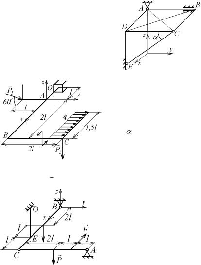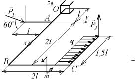 сти под углом 60 к горизонтальной плоскости, и вертикальной силой P2 = 10 Н, приложенной к точке С. Опреде-