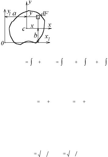 где каждый элемент площадью dF умножается на квадрат расстояния до точки О пересечения оси с плоскостью сечения.