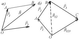 одной точке (рис. 7.7,б). Складывая силы P |