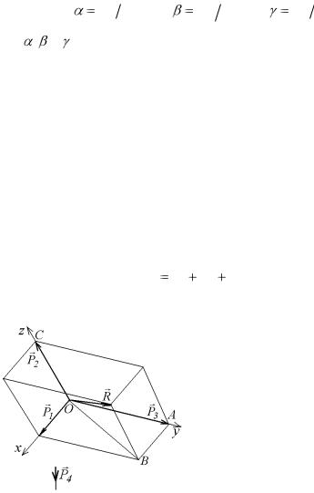 Если составляющие силы взаимно перпендикулярны, то получается прямоугольный параллелепипед. Проведем оси координат по трем сходящимся ребрам этого параллелепипеда (рис. 7.9). Тогда модули P1, P2, P3 составляющих сил будут равны абсолютным величинам соответствующих проекций равнодействующей силы на эти