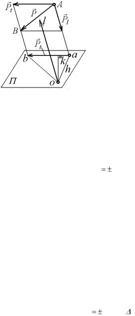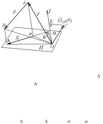 вают алгебраическое значение произведения составляющей силы вдоль плоскости П, перпендикулярной к этой оси, на расстояние от этой проекции до оси, то есть на длину перпендикуляра, опущенного из точки пересечения оси с плоскостью на линию действия этой составляющей (рис. 7.16):