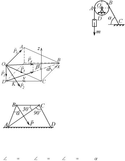 Ко второму концу D этой веревки подвешен груз массой m . Найти силу давления, передаваемую через блок на ось блока и угол, который эта сила образует с горизонталью. Угол