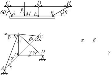 7.9. К горизонтальной балке АВ, подвешенной на трех |