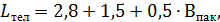 Lтел = 2,8 + 1,5 + 0,5 · 2,1 = 5,35 м;
