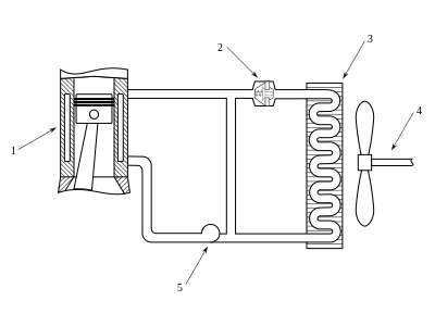 В жидкостных системах охлаждения тепло рассеивается в окружающую среду с помощью обдуваемого воздухом радиатора.