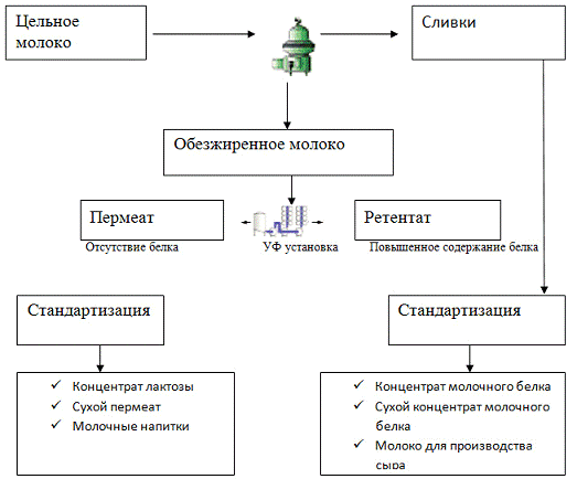Рисунок 2. Схема переработки молока с использованием микрофильтрации