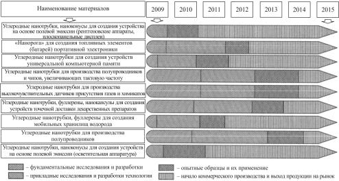 Как показывает анализ категории «применения, находящиеся в стадии разработки», лучшие перспективы имеют устройства на основе полевой эмиссии, как плоскопанельные дисплеи, так и осветительная аппаратура, поскольку уже к 2009 году имелись опытные образцы этих устройств. Среди вариантов применений, находящихся на стадии разработки, наибольшую долю рынка займут устройства на основе полевой эмиссии, где используются нанотрубки при производстве дисплеев.
