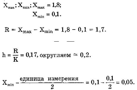 5.Определяют широту интервала, предварительно определив количество интервалов К