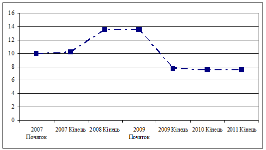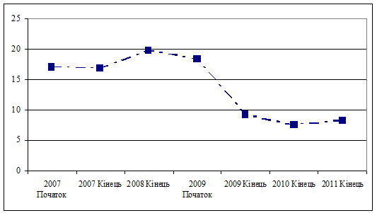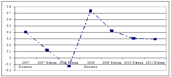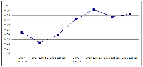 початку 2007 року. Потім до кінця 2008 року значення показника зменшується