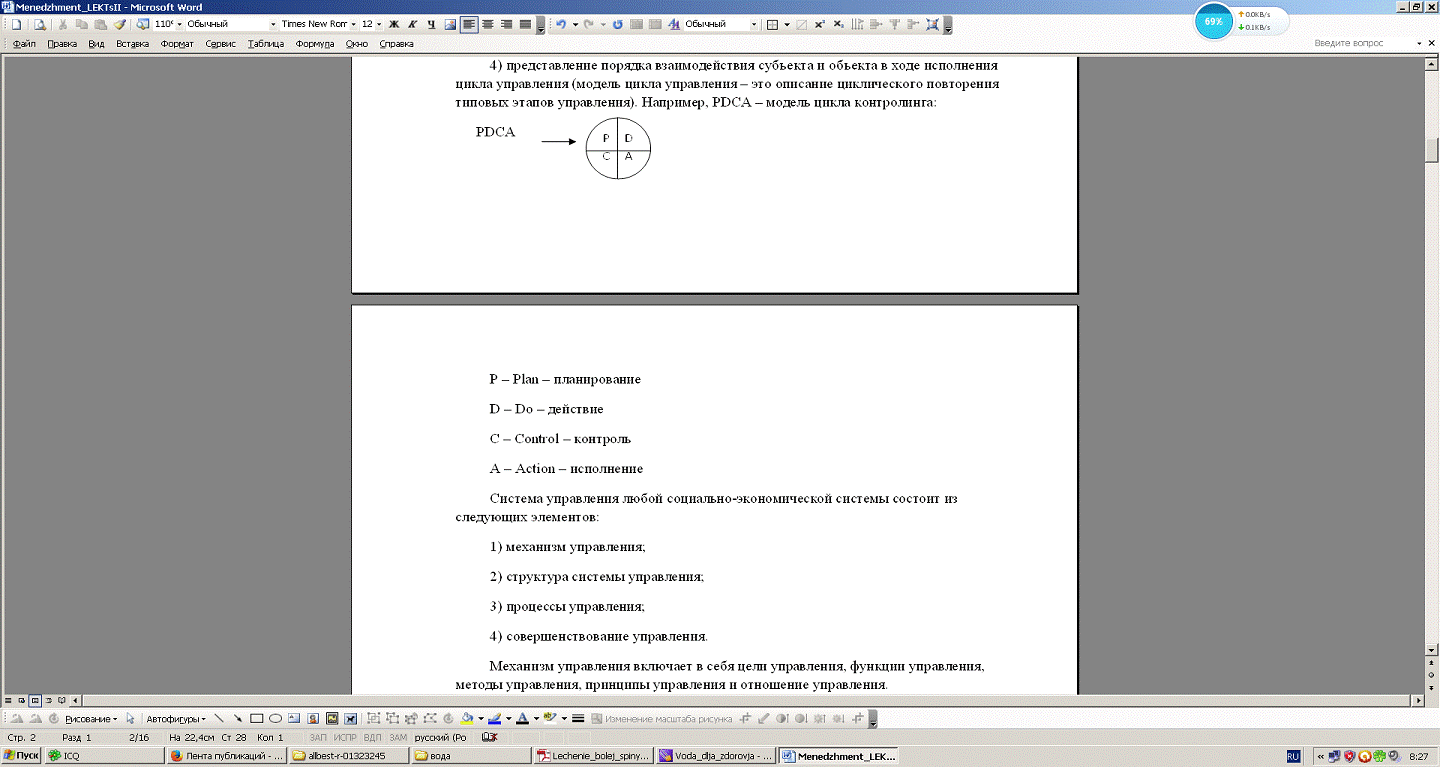 циклического повторения типовых этапов управления). Например, PDCA - модель цикла контролинга: