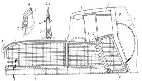 перегородки; 10. Шпангоут № 1К; 11. Экран выхлопной трубы двигателя