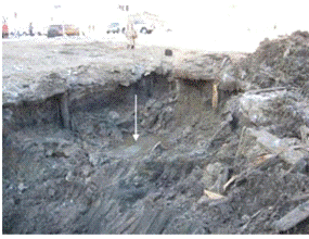 Рис.8. Грунт с криопэгами (стрелка) в культурном