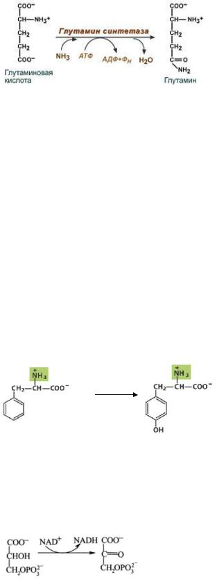 Глутамат +NH4++ АТФ→ глутамин+ АДФ + Р+Н+