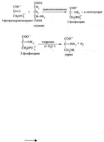 синтезируется втри стадииизпромежуточного продуктагликолиза -3- фосфоглицератаСерин ,который сначала вкетокислоту - 3- фосфогидроксипируват: окисляется