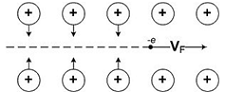 Как происходит электрон-фононное образование куперовских пар? Электрон при перемещении в периодической решетке кристалла притягивает ближайшие положительно заряженные ионы, слегка деформируя решетку и образуя кратковременное увеличение концентрации положительного заряда (см. рис. 1). Эта увеличенная концентрация положительного заряда притягивает другой электрон. Таким образом, эти оба электрона посредством кристаллической решетки притягиваются. Ионы при ненулевой температуре совершают колебания около своих положений равновесия. Кванты таких колебаний называются фононами.