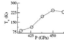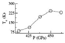 давления. Максимум в 242 К достигается при давлении 450 ГПа. Изображение из