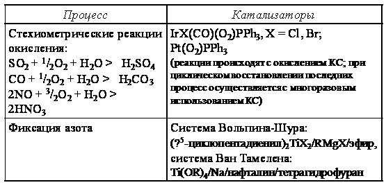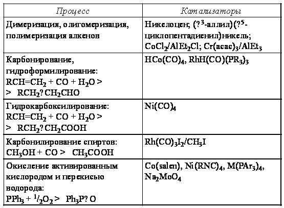Координационные соединения способны активировать молекулы водорода, кислорода, оксида углерода (II), олефинов, ацетиленов и других соединений.