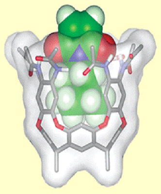 «Молекулярная ваза»: подражает работе фермента в том, что кавитанд обладает полостью, способной вместить лишь субстрат подходящего размера и формы. Функциональные группы, обеспечивающие водородное связывание по верхнему ободу кавитанда, активируют субстрат (ненасыщенный имид), оттягивая электронную плотность с кратных связей. Это обстоятельство увеличивает реакционную способность субстрата и увеличивает скорость участия его в реакции Дильса-Альдера с ароматическим спиртом. Размеры продукта не позволяют ему разместиться в полости, полость освобождается и может активировать очередную молекулу субстрата.