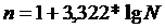 где n - число групп;- число единиц совокупности;-десятичный логарифм от N.