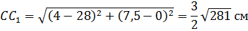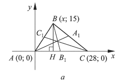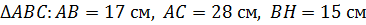 Задача №1. Две стороны треугольника равны 17 см и 28 см, а высота, проведенная к большей стороне, равна 15 см. Найдите медианы треугольника.