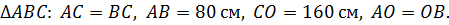 Задача №2. Медиана, проведенная к основанию равнобедренного треугольника, равна 160 см, а основание треугольника равно 80 см. Найдите две другие медианы.
