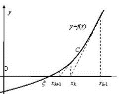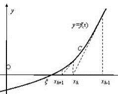 Геометрический смысл метода Ньютона: приближение к корню x уравнения (1) совершается по абсциссам точек пересечения касательных к графику функции y = f(x), проводимых в точках соответствующим предыдущим приближениям.