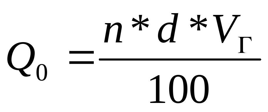При авариях на хранилищах сжатого газа величину Q0 рассчитывают по