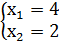 ; х1+2х2=8 ; 4х1=16 ; 4х2=12