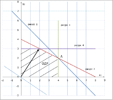 соответствующих ограничений и дающих в пересечении точку максимума.