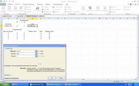 переменных В3-С3; вводим условия ограничений по ресурсам. Рис. 3