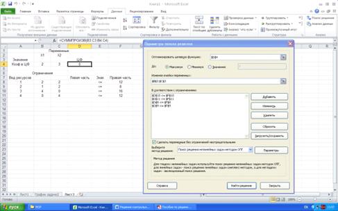 4. Проверка правильности решения с помощью средств MS Excel (надстройка Поиск решения).